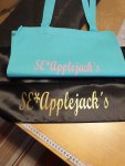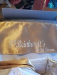 - Svart skynke med text i gult. Fin tygväska med stamnamn