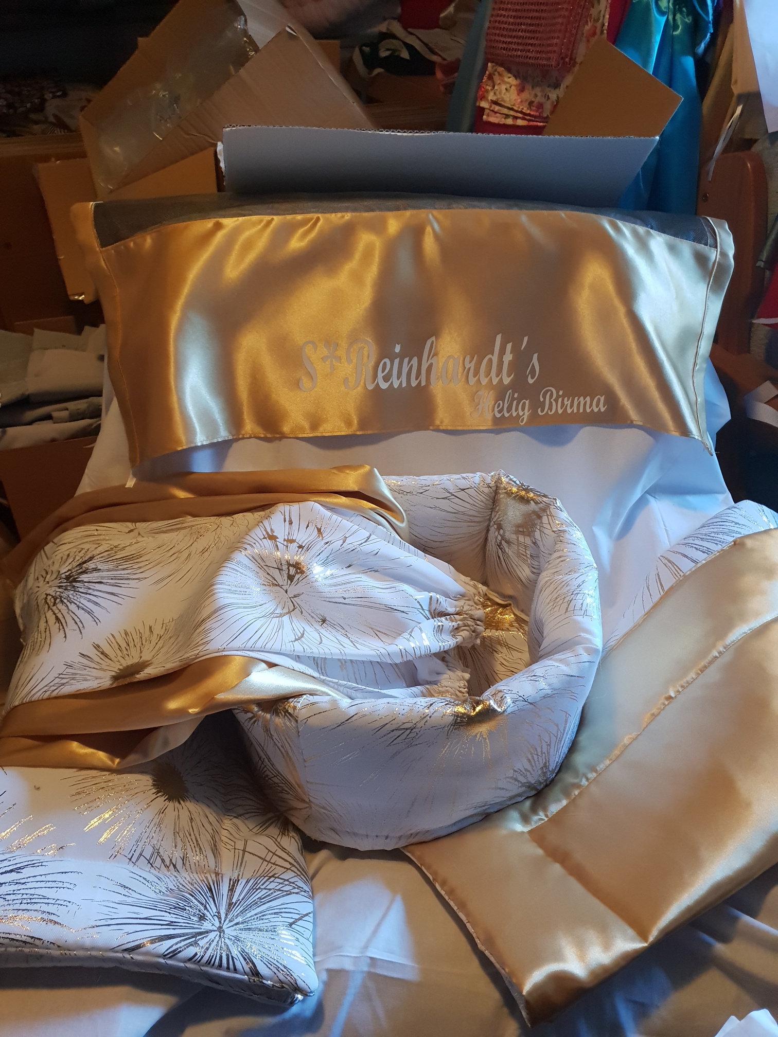 Snyggt skynke i guld o vitt